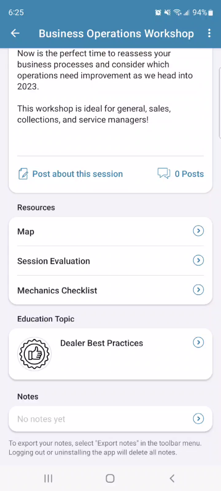 To download the session presentation materials on your phone, open the mobile application and select the session from the Schedule in the menu. Scroll to the bottom of that session and select the resource to download the presentation or other session materials.